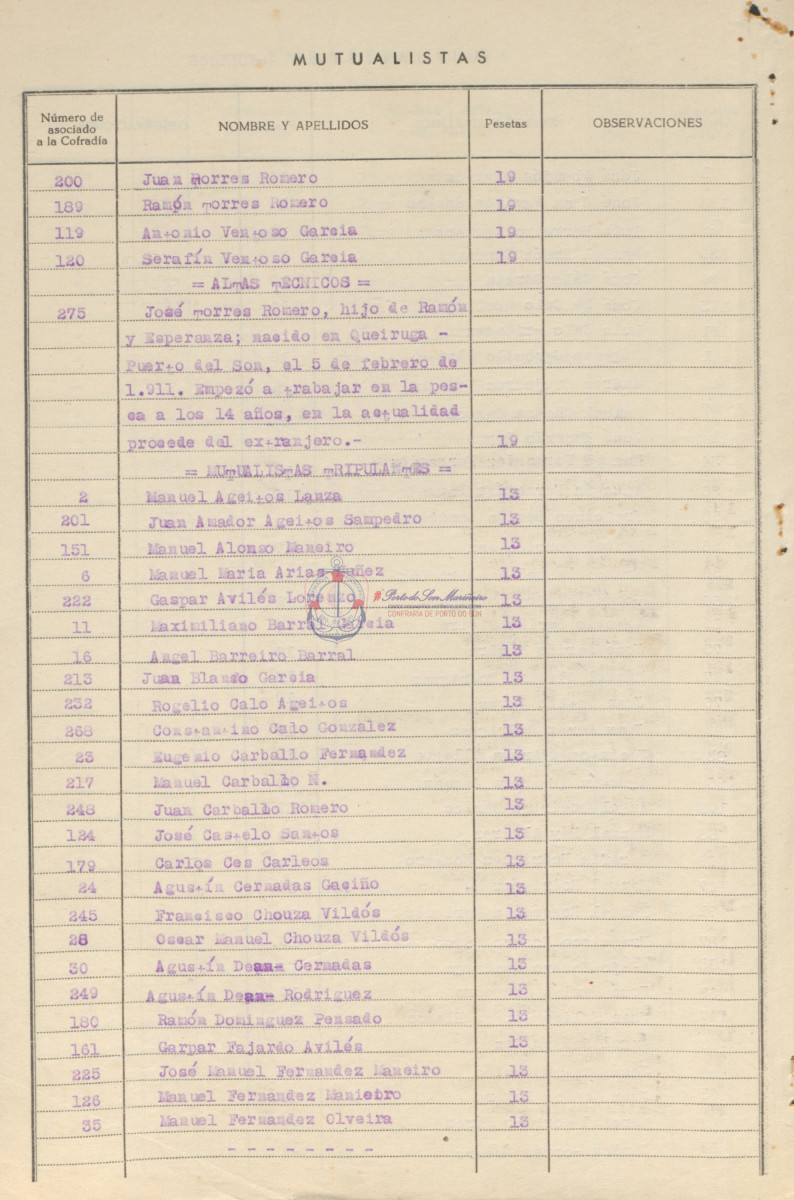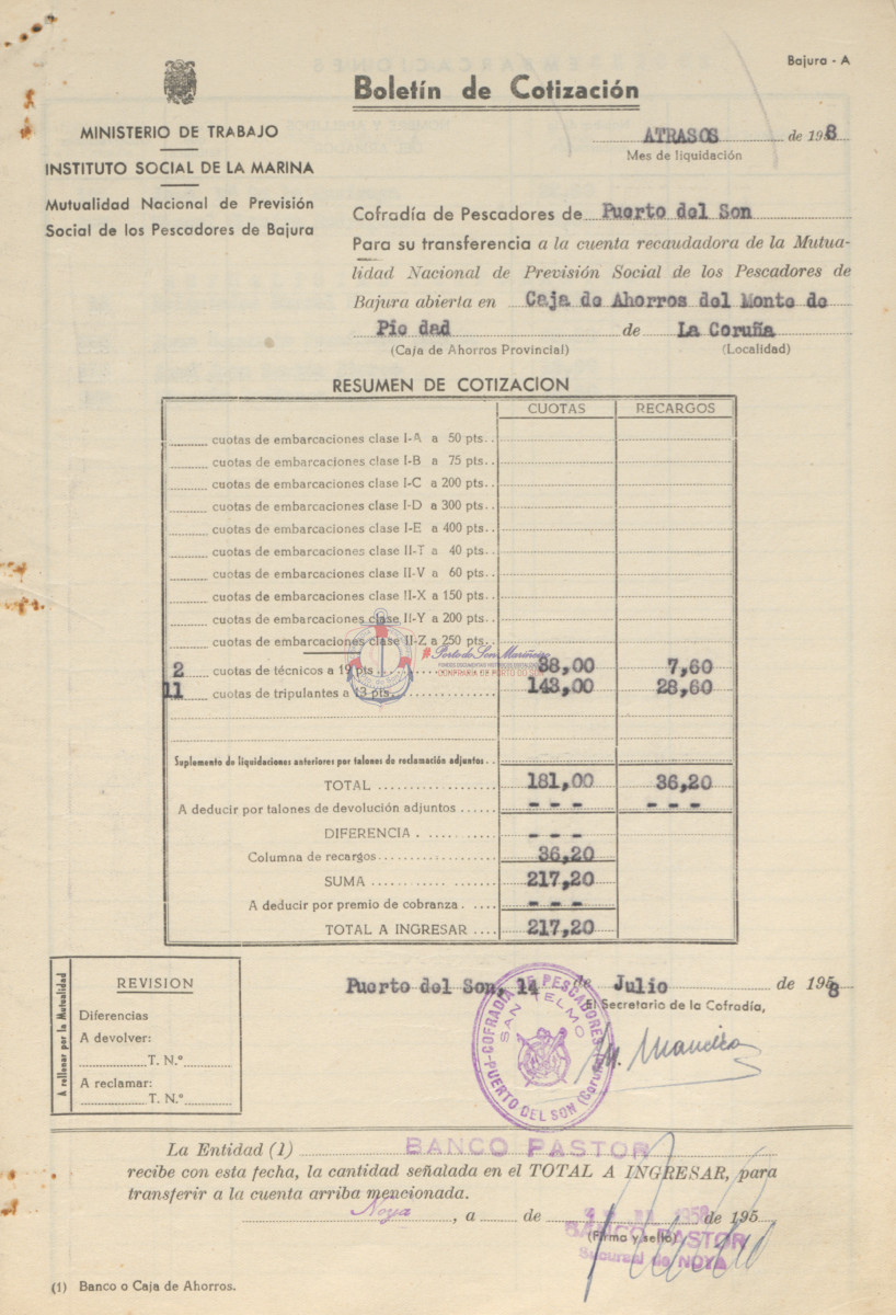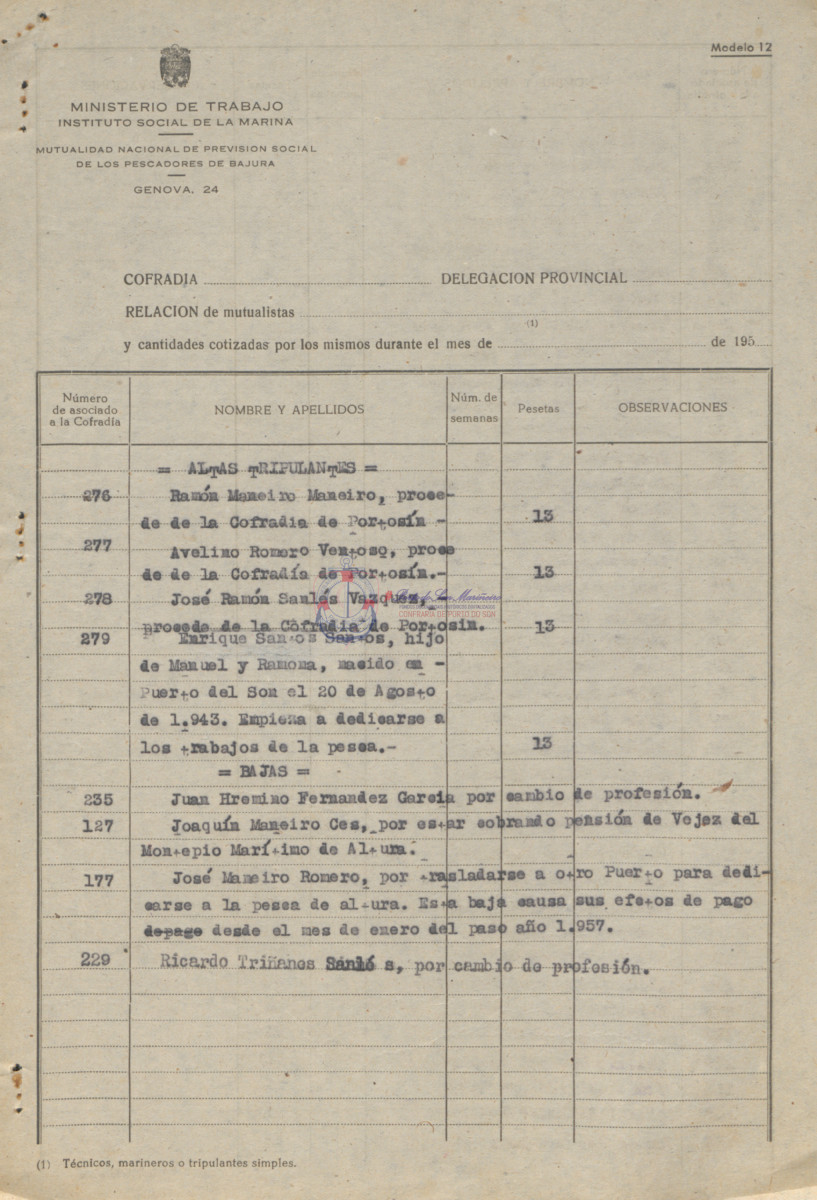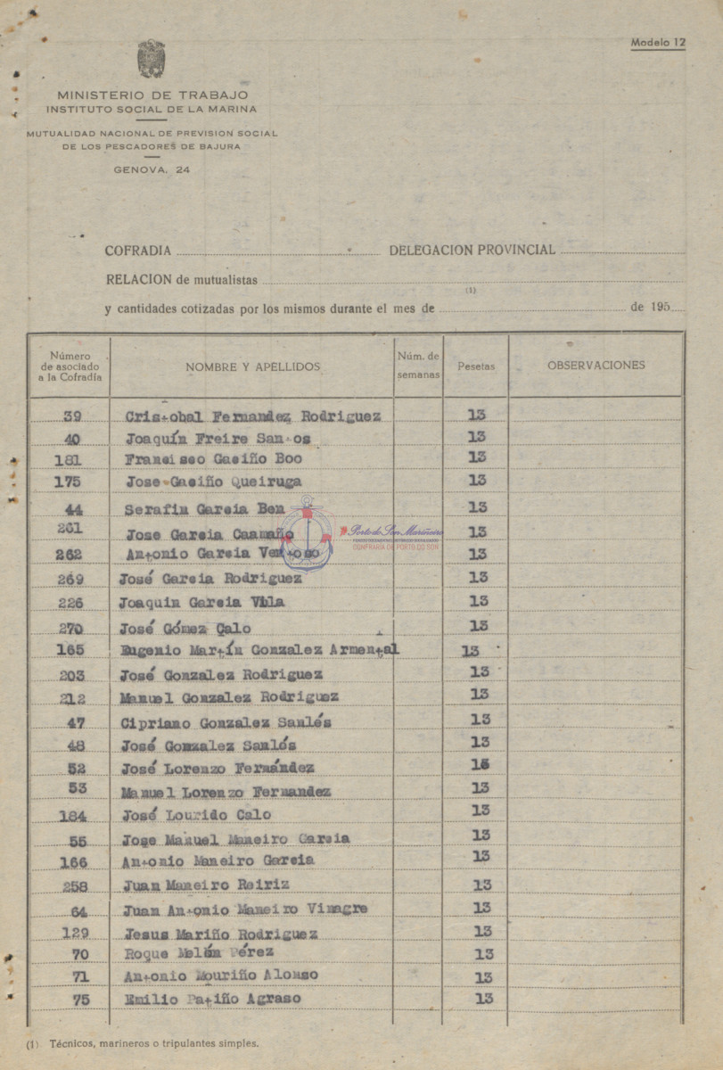 Confraría de Pescadores "San Telmo" de Porto do Son. Instituto Social de la Marina