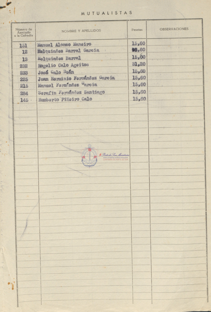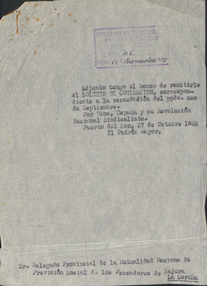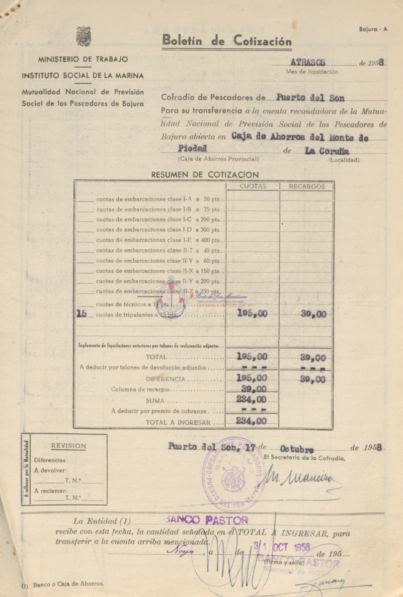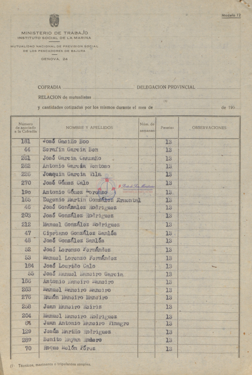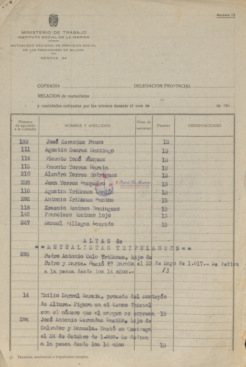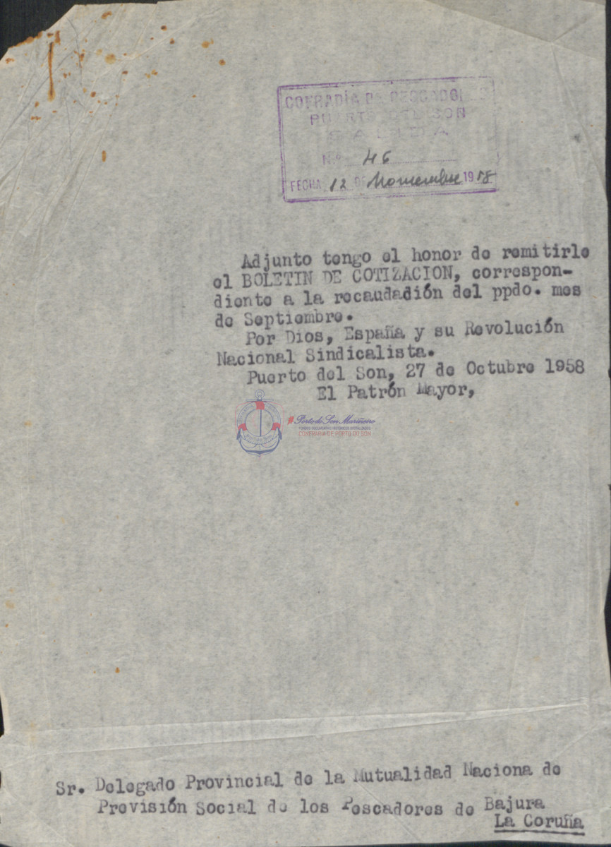 Confraría de Pescadores "San Telmo" de Porto do Son. Instituto Social de la Marina