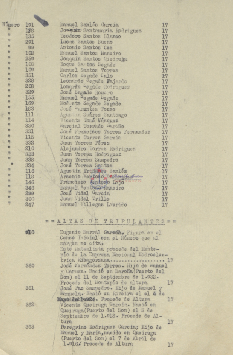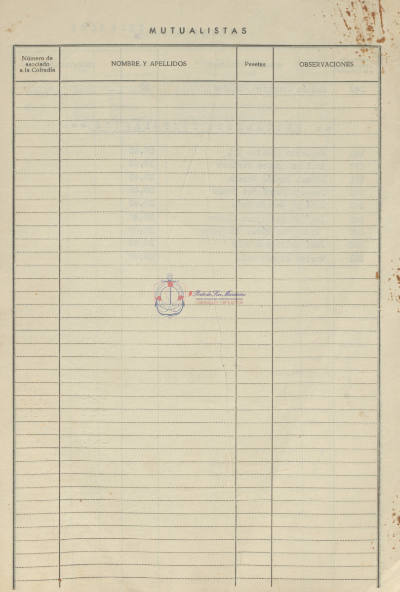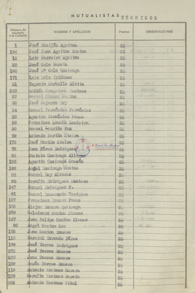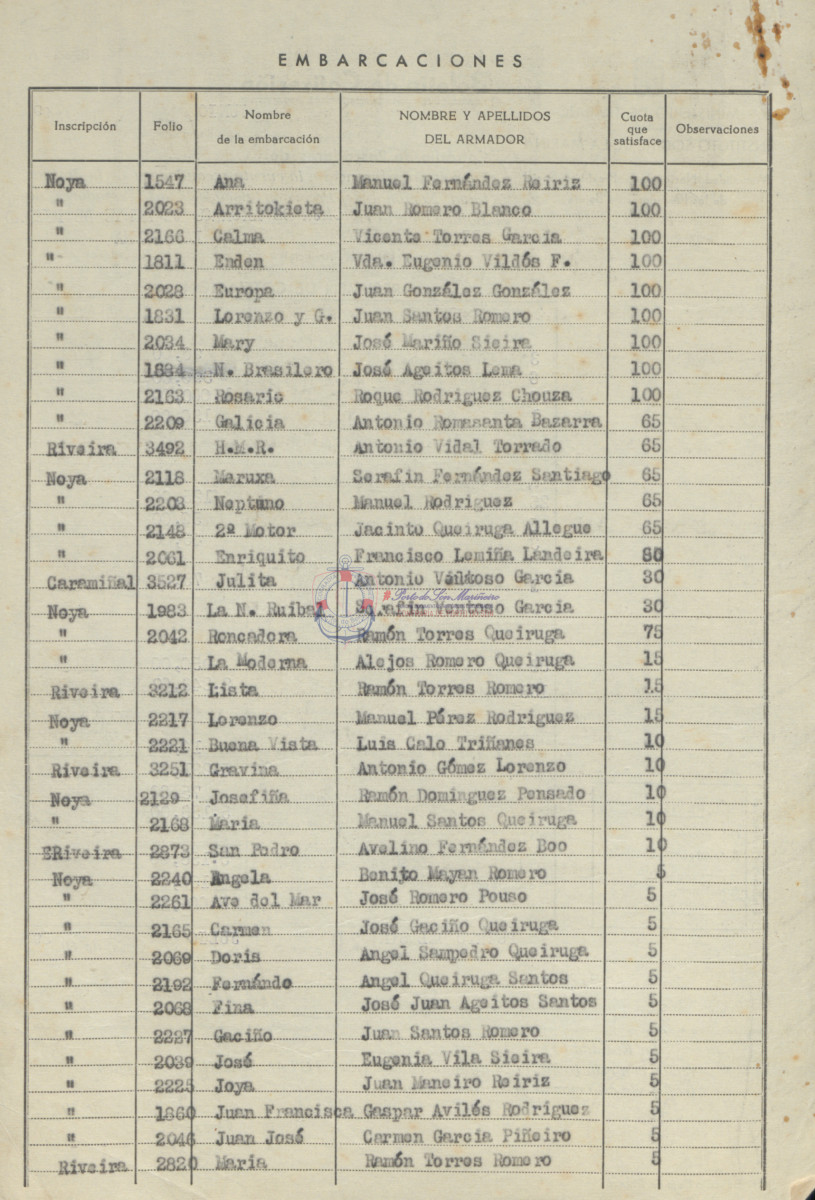 Relacións das cuotas ingresadas correspondentes ao mes de xuño do ano 1959, que corresponden aos mutualistas tripulantes, mariñeiros, técnicos e embarcacións da Mutualidade Nacional de Previsión Social dos Pescadores de Baixura