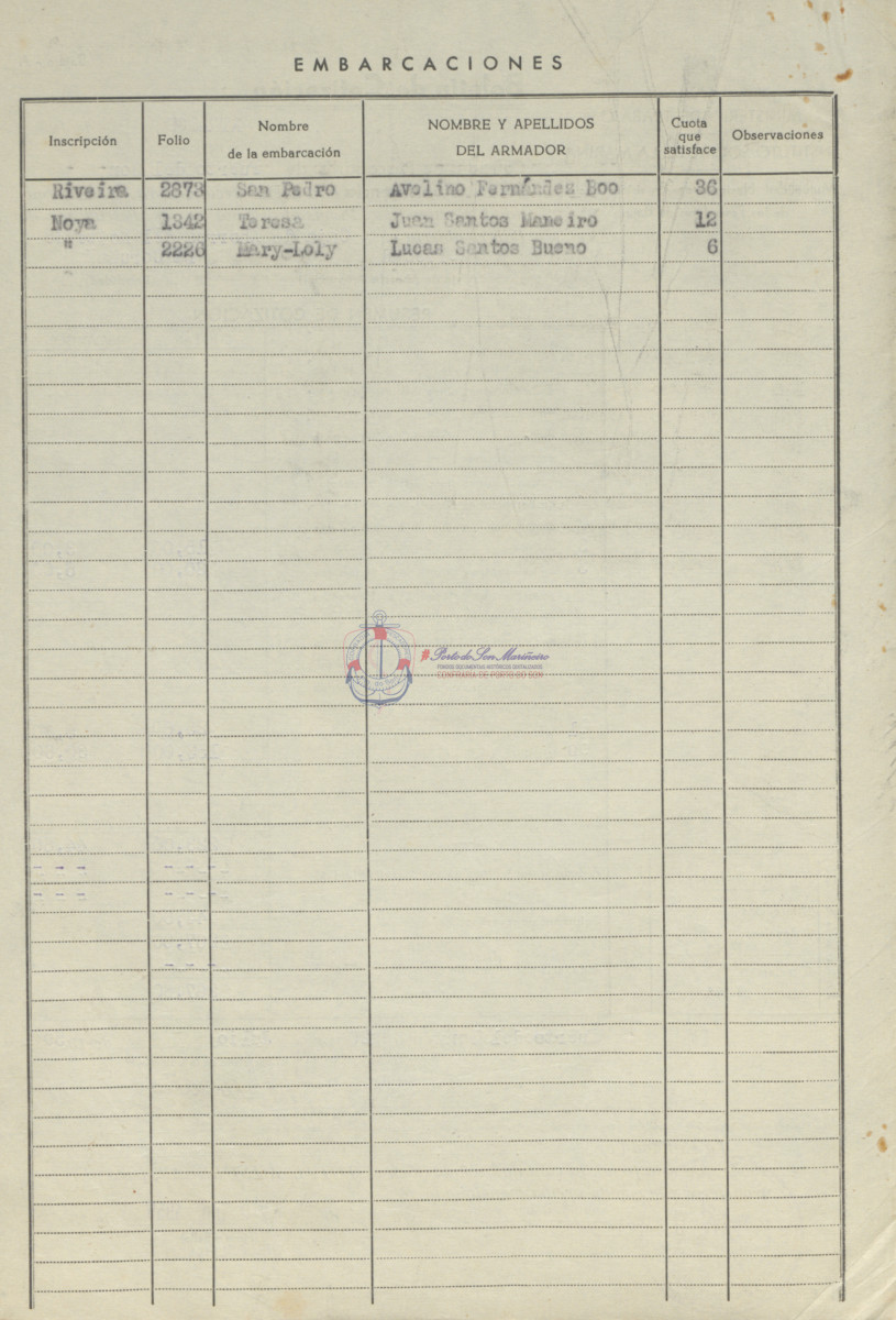 Confraría de Pescadores "San Telmo" de Porto do Son. Instituto Social de la Marina