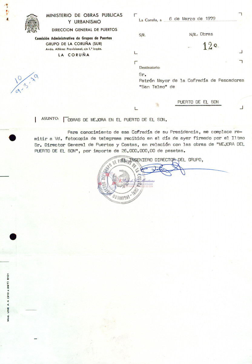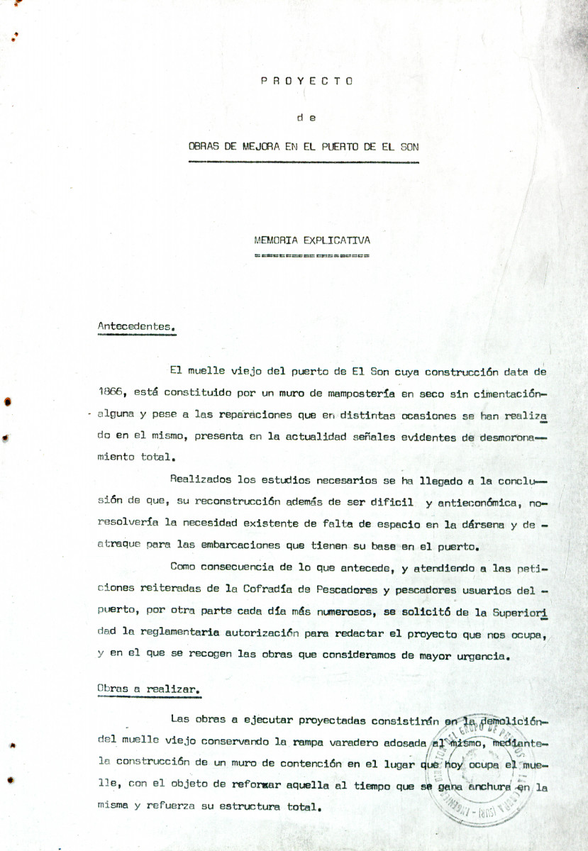 Contén documentación relacionada co proxecto de obras de mellora no porto do Son. Inclúe memoria explicativa