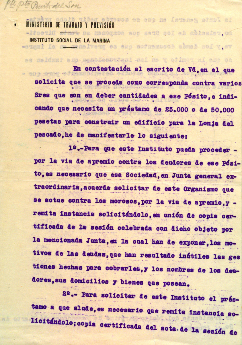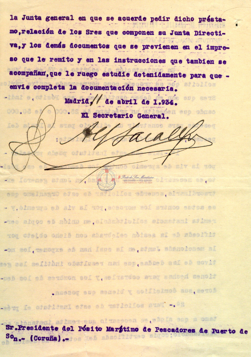 Solicitude de préstamo ao Instituto Social da Mariña para a construción de edificio para Lonxa de Pescado -1934-