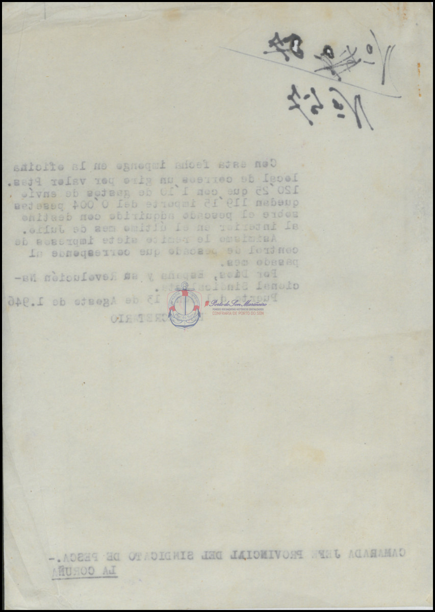 Confraría de Pescadores "San Telmo" de Porto do Son. Sindicato Provincial da Pesca.